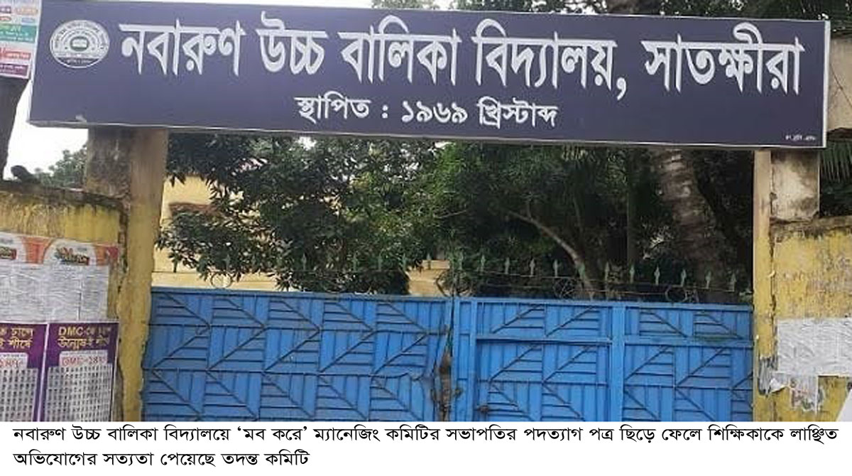 নবারুণ উচ্চ বালিকা বিদ্যালয়ে মব সৃষ্টি করে সভাপতির পদত্যাগপত্র ছেঁড়া, শিক্ষিকাকে লাঞ্ছিত — তদন্তে অভিযোগের সত্যতা
