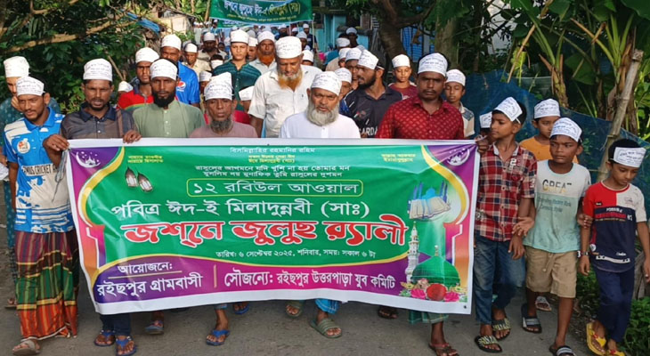 পবিত্র ঈদে মিলাদুন্নবী (সা.) উপলক্ষে সাতক্ষীরা পৌরসভার সাত নাম্বার ওয়ার্ডের রইচপুরে এক বর্ণাঢ্য জশনে জুলুস র্যালি অনুষ্ঠিত হয়েছে। ১২ রবিউল