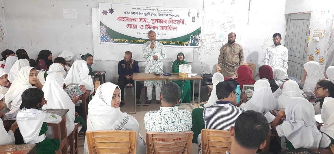 পবিত্র ঈদে-ই মিলাদুন্নবী (সাল্লাল্লাহু আলাইহি সাল্লাম) উদযাপন উপলক্ষে শনিবার (৬ সেপ্টেম্বর) সাতক্ষীরা সরকারি বালিকা উচ্চ বিদ্যালয়ে আলোচনা সভা, দোয়া মাহফিল