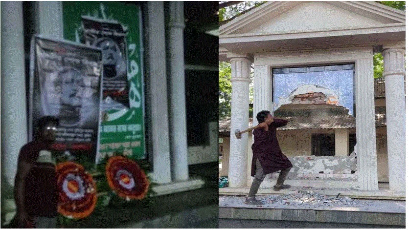 সাতক্ষীরায় শেখ মুজিবুর রহমানের প্রতিকৃতিতে পুষ্পমাল্য অর্পণ, পরবর্তীতে ভাঙচুর