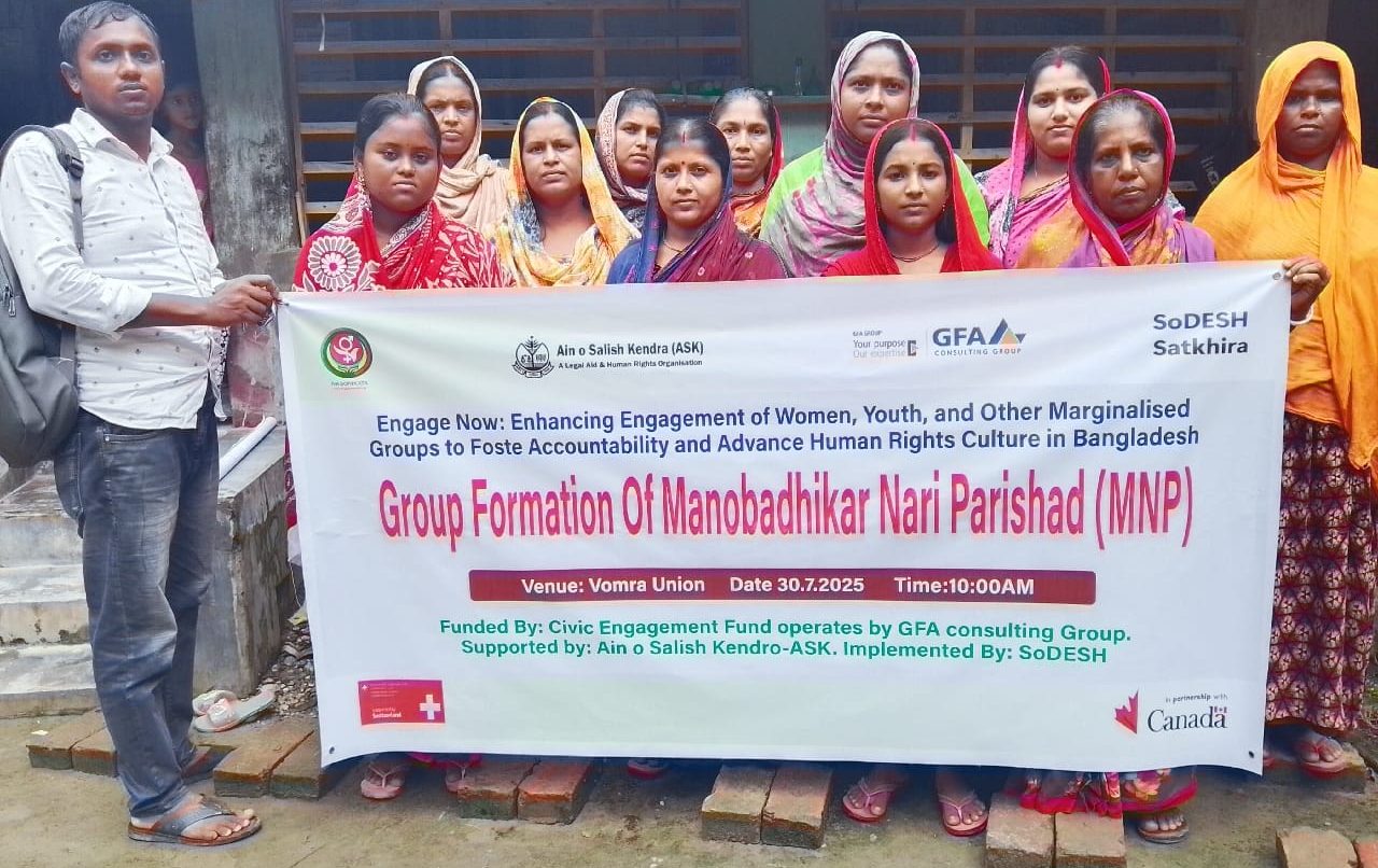 নিজস্ব প্রতিনিধি: মানবাধিকার ও জেন্ডার সমতা প্রতিষ্ঠায় কাজ করতে সাতক্ষীরার ভোমরা ইউনিয়নে দুটি সিভিক কমিটি গঠন করা হয়েছে। আইন ও
