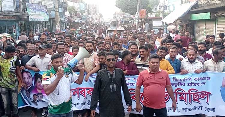 বিএনপির ভারপ্রাপ্ত চেয়ারম্যান তারেক রহমানকে নিয়ে অশালীন বক্তব্য ও শহীদ রাষ্ট্রপতি জিয়াউর রহমান বীর উত্তমের ছবি অবমাননার প্রতিবাদে সাতক্ষীরায় মানববন্ধন