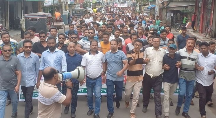 সাতক্ষীরায় স্বেচ্ছাসেবক দলের বিক্ষোভ মিছিল