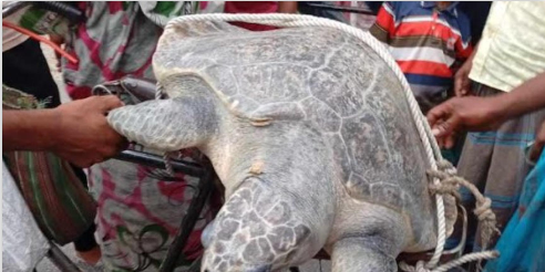 দেবহাটার ইছামতি নদী থেকে জেলের জালে বিশাল কচ্ছপ