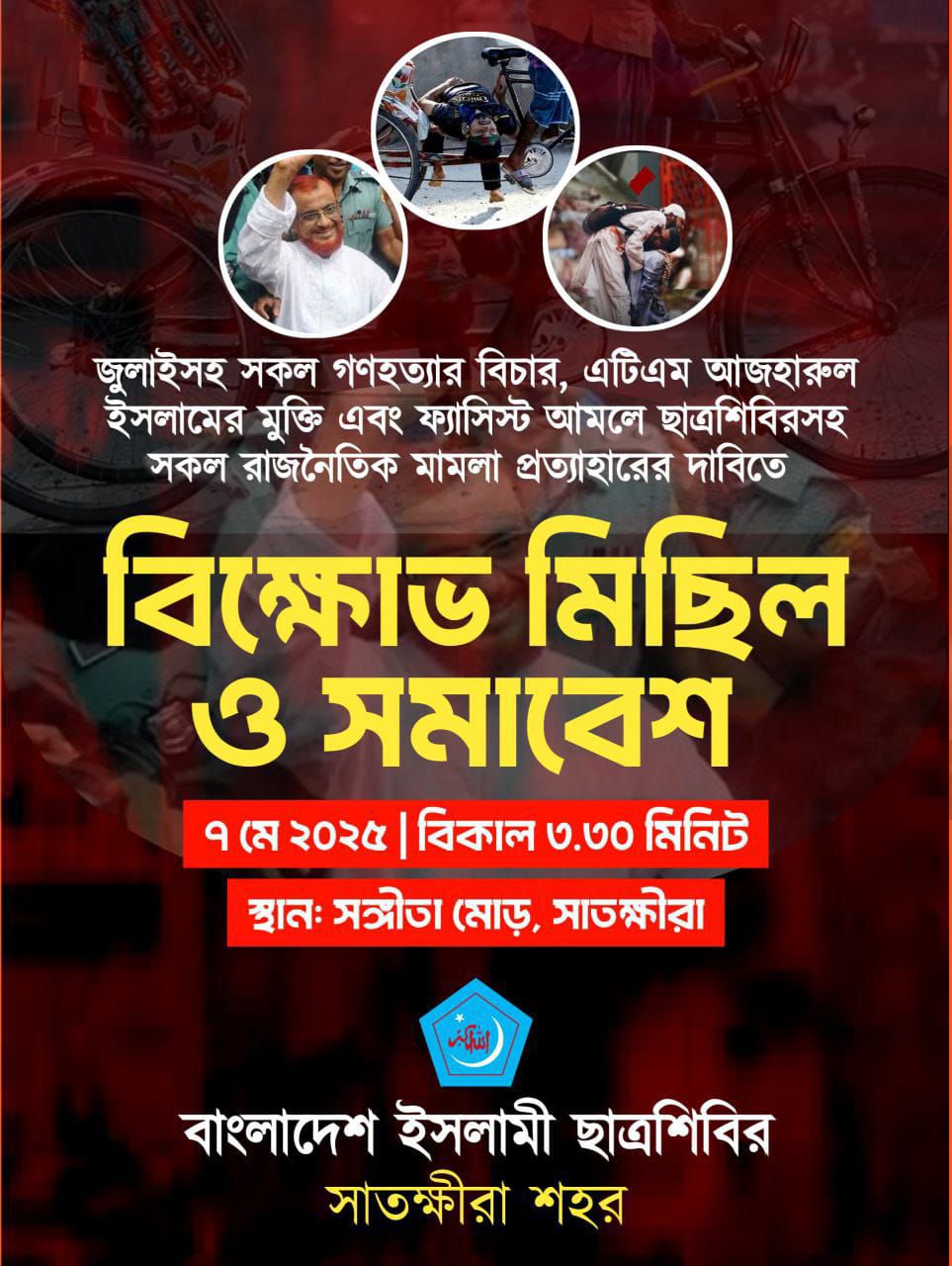 জুলাই গণহত্যার বিচার ও সকল রাজনৈতিক মামলা প্রত্যাহারের দাবিতে শিবিরের বিক্ষোভ আজ