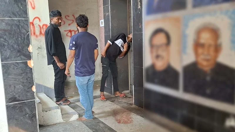 নওগাঁ জেলা আওয়ামী লীগের পরিত্যক্ত কার্যালয়ের ভেতরে হঠাৎ এক বিকট শব্দ শোনা যায়। পরে সেখানে গিয়ে লিফটের ফাঁকা জায়গা থেকে