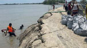 শ্যামনগর উপকূলে নদী রক্ষা বাঁধে ফাটল, আতঙ্কে গ্রামবাসী