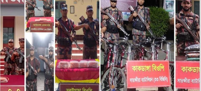 বুধবার (২৩ এপ্রিল ২০২৫) সাতক্ষীরা ৩৩ বিজিবি ব্যাটালিয়ন এর অধিনস্থ তলুইগাছা, ঝাউডাঙ্গা বিশেষ ক্যাম্প, কাকডাঙ্গা, মাদরা ও সুলতানপুর বিওপির সীমান্ত