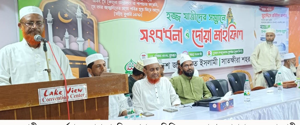 বাংলাদেশ জামায়াতে ইসলামী সাতক্ষীরা শহর খাখার উধ্যোগে হজ্জ যাত্রীদের সম্মানে সংবর্ধনা ও দোয়া মাহফিল অনুষ্ঠিত হয়েছে। ২৩ এপ্রিল বুধবার রাত