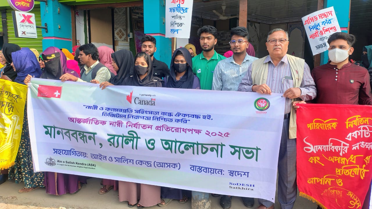 নিজস্ব প্রতিনিধি: “নারী ও কন্যা শিশুর প্রতি সহিংসতা বন্ধে ঐক্যবদ্ধ হই, ডিজিটাল নিরাপত্তা নিশ্চিত করি”—এই প্রতিপাদ্যকে সামনে রেখে সাতক্ষীরায় আন্তর্জাতিক