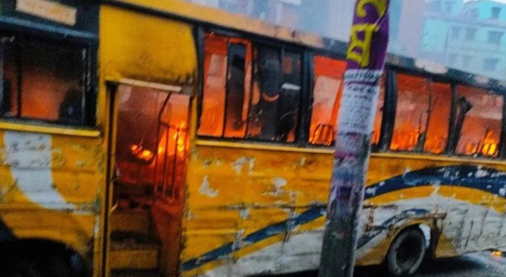 রাজধানীতে গুলি ছুড়ে আতঙ্ক, যাত্রীবাহী বাসে আগুন