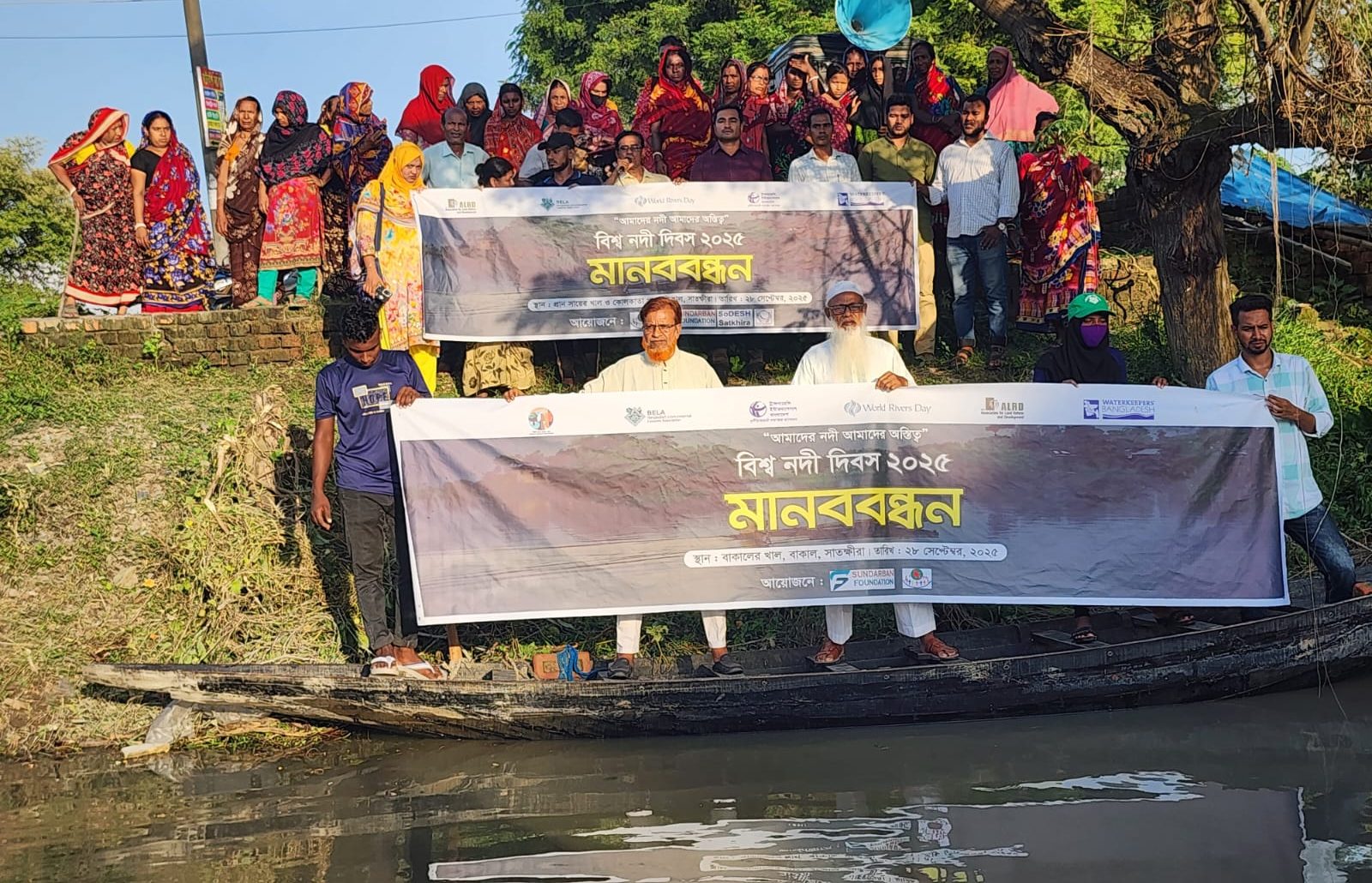 বিশ্ব নদী দিবসে সাতক্ষীরায় নৌকায় মানববন্ধন